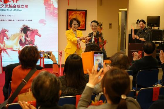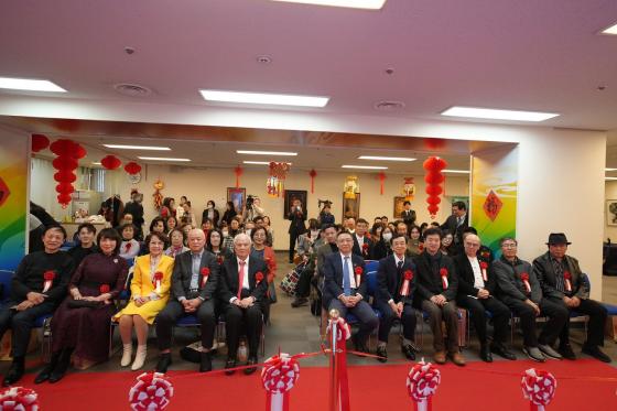 中国文化センターの羅玉泉センター長、全日本華僑華人社団連合会の高原龍一代表理事、同会の程波副会長、アジア芸術文化協会の李永亮会長、日中水墨協会の葉霖副会長、映画監督・プロデューサー潘民生氏、華人チャンネルの李曼代表、日本華人女性書道協会の宣家慶会長、東京票房の呉敏代表、Zen National Japan株式会社の戸田麻美社長、peppaca世界手工芸品プラットフォームの金明志アジア地域マーケティングディレクターら50人余りのゲストが開幕式に出席した。